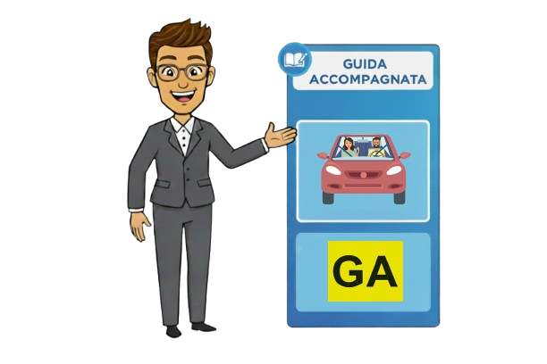 Il candidato in possesso della patente di categoria A1, al compimento del 17mo anno di età, può richiedere l’autorizzazione alla guida accompagnata, per poter guidare le autovetture (con un accompagnatore) fino al compimento dei 18 anni. Il candidato deve realizzare almeno 10 ore di guida esclusivamente con l'autoscuola. Una volta completate le ore di guida, l'autoscuola rilascia una dichiarazione in cui certifica il compimento del percorso e un documento rilasciato dalla motorizzazione civile, che autorizza il candidato a condurre autovetture solo con gli accompagnatori designati. L'accompagnatore designato deve essere persona con patente di categoria B o superiore conseguita da almeno 10 anni e non più di 65 anni di età. Il veicolo durante le esercitazioni con l'accompagnatore deve essere contraddistinto da un contrassegno riportante la sigla “GA”, che verrà fornito dalla nostra autoscuola al completamento del percorso.